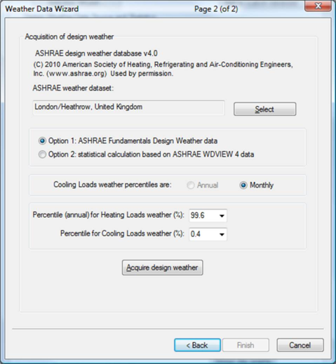 Once a location for the design weather dataset is chosen then the user has the choice to decide upon how the design summer and winter external temperature is derived.