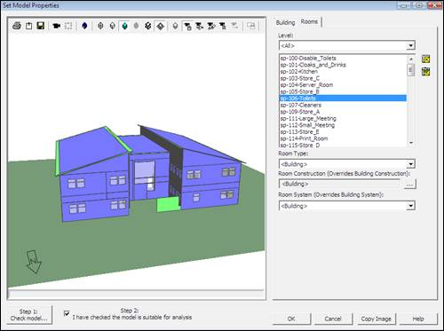 Later in the design stage, when more detailed information about the building is available, data can be applied to individual rooms to obtain more accurate analysis results.