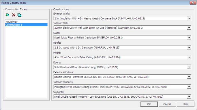 Click the Constructions Button to open the Room Construction dialog.