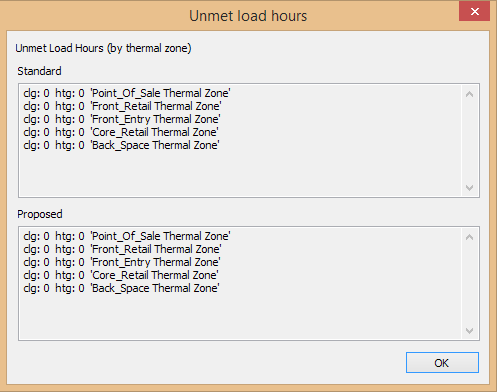 A warning message will pop up at the end of the simulation if any thermal zone in the building has more than 150 cooling or heating unmet load hours. In IES VE Title 24, thermal zones in the proposed model exceeding unmet load hour limits will not terminate compliance analysis but will generate a warning, and will be included in a new table on the compliance report.