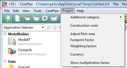 ModelIT, which contains exact measures for the dimensions of the building, e.g. total floor area, roof area, external wall area, etc. These parameters can be used to generate the elemental costs which are required for the Outline Cost Plan. The Costs data file defines the "rules" and price data that is used to calculate the individual costs. The "rule" defines which measure is to be applied to the unit price to give the cost, e.g. "total floor area" is a commonly used measure. There are two principal CostPlan templates available at this time: a whole building template; and a building services template.