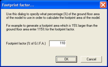 The footprint factor can be adjusted as a percentage of the gross internal floor area. The default is set as 110%.