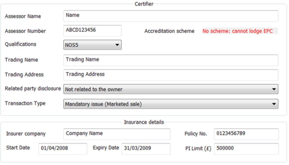 Trading name & Address (EPC only): The employer or the trading name and address of the energy assessor.