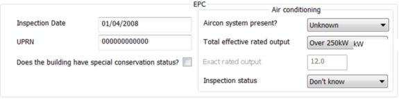 Inspection status: Indicate whether an air conditioning inspection been commissioned for compliance with Energy Performance of Buildings Regulations.