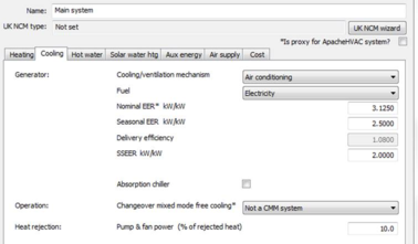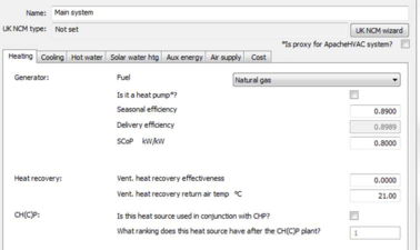 In addition to the key parameters mentioned so far, there are other system parameters of importance such as heating and cooling system fuels, ventilation heat recovery effectiveness. These are also generated automatically from data entered in the wizard.