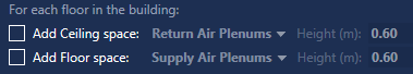 You can optionally choose to create additional floor and/or ceiling spaces at each storey in the building. Each of these options is controlled by a checkbox – when ticked, this will enable the dropdown menu allowing the type of space to be selected and the text box for the height of the space.