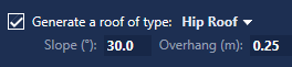 There are two types of roof that can be created – Hip Roof and Gable Roof. The slope of the roof is specified in degrees, in the range of 5° to 75° inclusive.