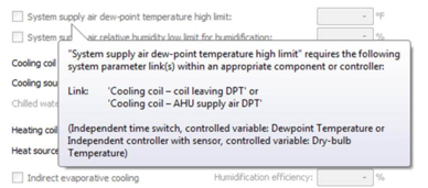 For all prototype systems from the HVAC library, these links are pre-set; however, they can be changed if needed and can be set as desired when adding a new component or control. It is acceptable to completely revise any pre-defined managed system to set up a fully custom system using the links as desired; however, it is recommended that you start with existing prototype system of similar configuration both as an illustrative example and to minimize the additional time and effort required to build the system from scratch.