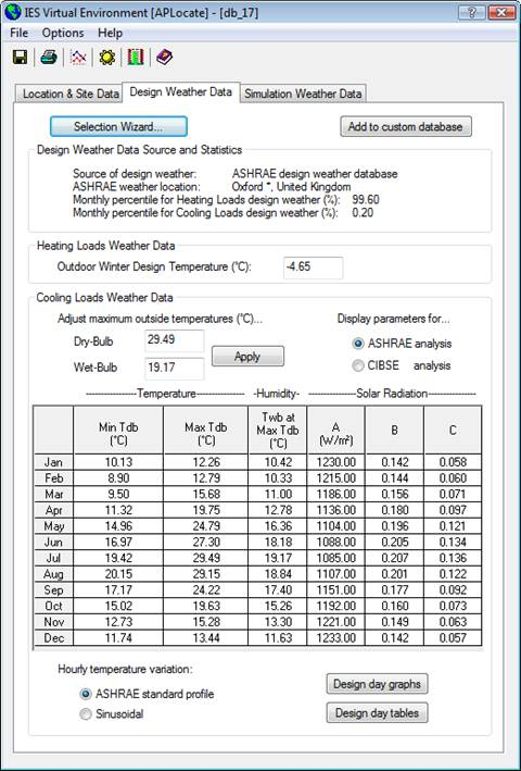 Tab: Design Weather Data