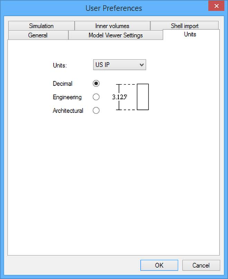 This allows you to select the type of units used for data input and output: Metric or US IP (Inch-Pound / Imperial).