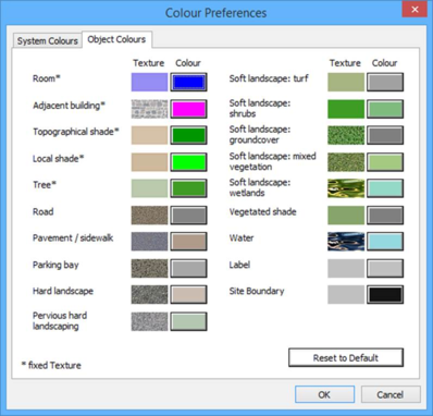 Allows you to change the default colours and textures used for all the specified object types within the VE.
