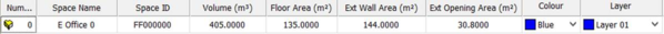 The "Space Name", "Colour" and "Layer" can all be edited by double clicking on the field. The other fields are read-only.