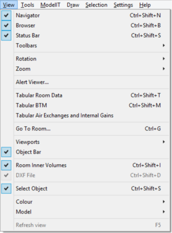 The “Object Bar” and toolbars can be switched on/off and the viewport options selected from the View menu on the pull-down menu bar. For more information see general help topics user guide-section 4-View options)