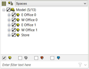A row of icons representing the different Building Space sub-types (Room, Void, Return Air Plenum and Supply Air Plenum) is displayed below the browser. The browser displays only spaces of the sub-types that are ticked.