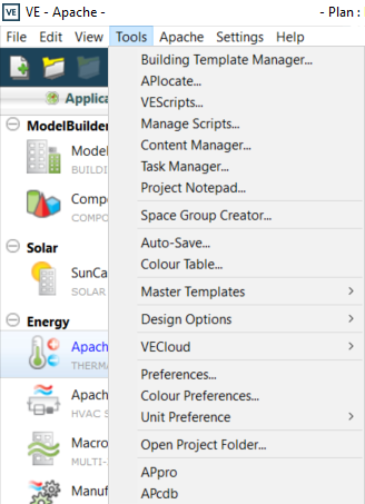 Open the VE User Preferences dialog where it is possible to save settings elating to General options, Model Viewer, project Units, Simulation settings, Inner Volumes and Shell Import options.