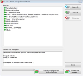 The Room Group Creator allows the automated rules based creation of room groups using expressions and the results from an analysis. For example, this allows you to automatically group all rooms with overheating during summertime.