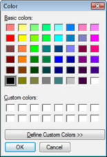 To change any colour one can either select the colour and click the Change Colour button or more simply just double-click on any of the colours to bring up the standard windows colour dialog: