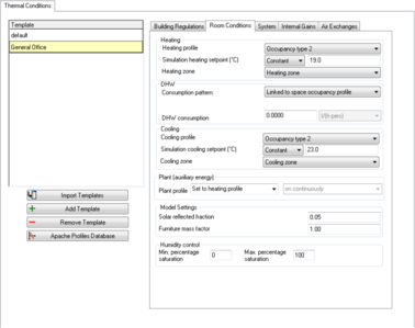 This option opens the Building Template Manager which controls templates to be assigned to the model.