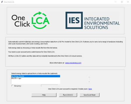 This automatically submits materials and energy consumption data from VE-Gaia to Once Click LCA.