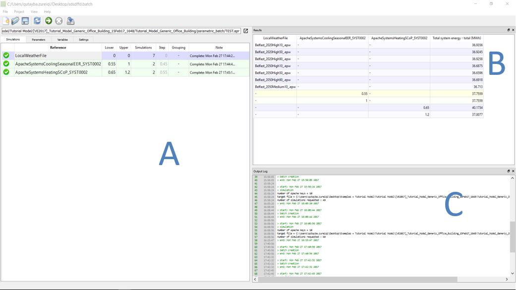 o The data input in the Simulations section dictates the output of information in Results Viewer and Output Log.