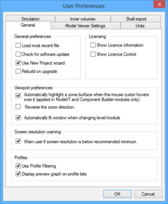 · Load most recent file: When checked this will force the VE to load the project that was open when the software was last closed. See section 3.2 for more detail.