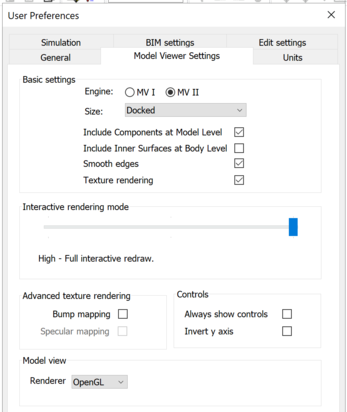 · Size allows you to select whether to view the Model in “Normal”, “Full size” or “Docked” mode when the model viewer window opens up.