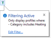 If you hover the mouse cursor over the filter icon, an information balloon will be displayed summarising the current filter options. In combination with the icon state (green for filtering, white for no filtering), this allows you to quickly tell at a glance the state of the filter and what profiles will be displayed by its associated control.