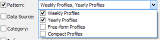The Pattern filter allows you to select which types of profile you want to see – Weekly, Yearly, Free-form or Compact. These can be selected by clicking on the drop-list and clicking the checkbox next to the appropriate type: