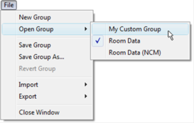 To select a tab group, simply select it from the Open Group sub-menu in the Tabular Space Data File menu.