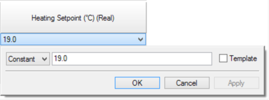 Dropdown window cells are currently used for the Heating Setpoint and Cooling Setpoint attributes (where they allow you to switch between a constant temperature value and a timed profile), and for DHW Consumption.