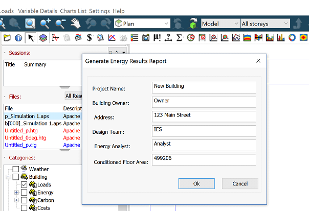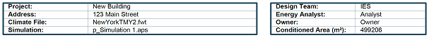 · Conditioned Floor Area: Enter floor area of building to be reported and used in any per floor area reporting (this can be ascertained from the model e.g. using ModelIT area reporting or other Apache generated outputs and is provided as a user input to allow for variations in reporting preferences e.g. void spaces)