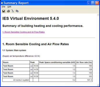 Report can be generated using result of either CIBSE Room Loads or ASHRAE Room Loads calculation run using Apache.