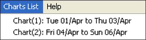 When charts or tables are created, they are listed in the Charts List menu. You can minimise a chart, and it will remain listed here. When you select it in the list it will be displayed again. If you close a chart, it is removed from the list, and completely removed from memory.