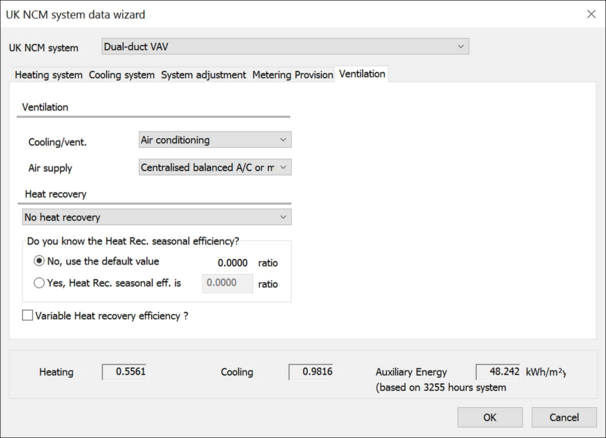 For those systems the Cooling system tab has not been activated, you can select between Mechanical and Natural ventilation.