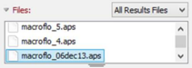 The files list shows you all results files available for the current project. Selecting different options in the combobox will change what types of results files are displayed in the list. If you need to see more files listed at once you can resize the list using the small gripper