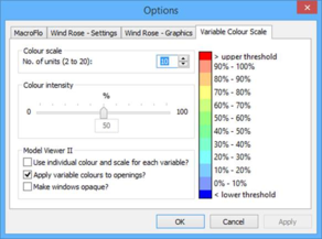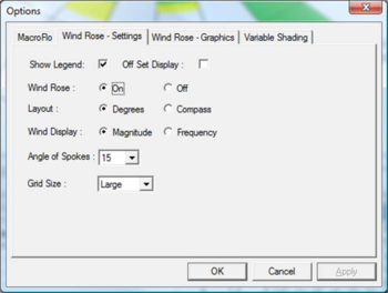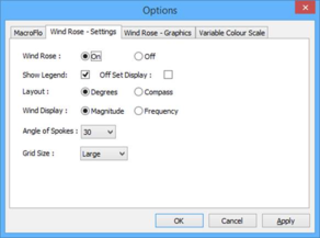These options control the way Wind Rose are displayed in Model Viewer I.