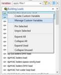 Another way to create a new variable is to select one or more variables in the list, right-click and select the ‘Create Custom Variable’ option. This will bring up the Manage Custom Variables dialog prefilled with your selected variables, an expression similar to ‘A + B …’, and a name.