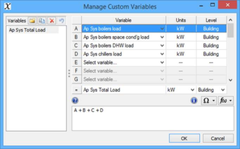 This new feature allows you to create custom ‘post-process’ variables using the standard set of variables output in Apache results files. Custom variables are just other variables combined in some form to produce another output. They are generic meaning they are not linked to any specific rooms, surfaces, openings, system, component or HVAC object. This allows you to create variables that can be used across multiple projects.