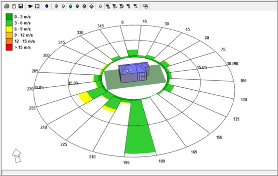 A visual representation of the main wind directions for the chosen location. View settings for the wind rose can be adjusted in Options dialog.