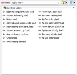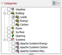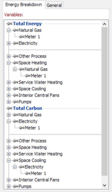 Energy Breakdown variables are not visible by default and can be turned on using the Categories tree. The options to view the Sources & Meters Breakdown and the Uses Breakdown are located under the Building Energy and Building Carbon categories. If the project you have opened doesn’t contain any meter results, these options will be disabled. All other variables not related to sources, uses and meters will appear in the General variable list as before.