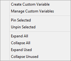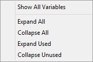 If you find all variables aren’t shown for your preset, or you want to create a preset using variables that aren’t available to your current project, you can use the ‘Show All Variables’ option in the tree’s right click menu.