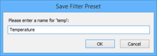 Upon saving a preset you will be prompted to enter a name. Once entered, the preset will show up in the drop down menu and can be used straight away. Note the save option will be disabled until you check more than one data level.