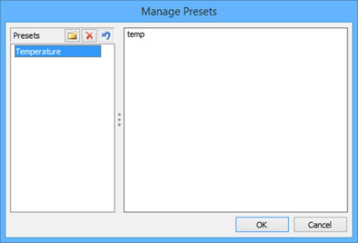 When managing presets, you will be presented with the dialog pictured above. Using the dialog you can create a new preset (
