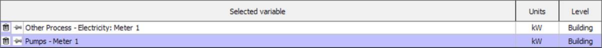 Certain Energy Uses have a tied Energy Source, which in other words means they have a single fixed source of energy. For example, Pumps are always powered by Electricity. Any Uses which are tied to a Source will have the Source name omitted from the Energy Breakdown tree and variables. See below for an example.