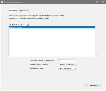 Once the overheating model thermal simulation is complete press the Generate overheating report. The ADO analysis dialog will appear: