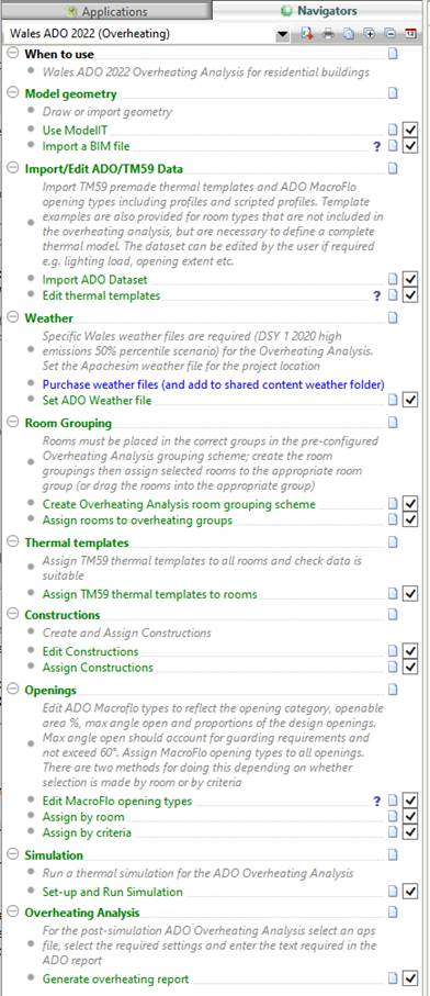The Wales Approved Doc O (ADO): 2022 overheating analysis Navigator is intended for residential (dwellings), Residential (institutional; where people sleep on the premises), Residential (other; hall of residences) and the residential elements in mixed-use developments.