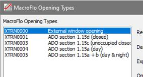 Pre-made Macroflo opening types are also provided based on ADO opening requirements. The opening types are assigned with pre-made scripted profiles that provide the required ADO operation control.