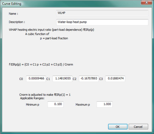 Figure 3 - 60 : Edit dialog for the water-to-air heat pump cooling capacity curve