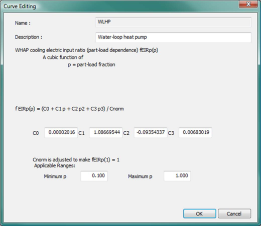 Figure 3 - 62 : Edit dialog for the water-to-air heat pump cooling EIR part-load dependence curve