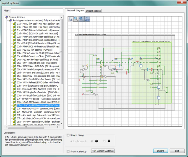 4. If already well underway with a large model and there is need to use some aspect of this model to test a new HVAC system configuration or controls, etc., place the portion of the building that will be represent what is being tested—e.g., all zones on one particular HVAC air handler that is to be controlled differently—on a unique layer within ModelIt and turn all other populated model layers OFF. If there are other systems in the HVAC system file, save a copy of the file and remove all but the system required for the experiment. This facilitates thermal modeling of just the selected zones or rooms and just the system associated with them. The simulation run could be performed for just one important or representative space in the building with other zones/multiplex layers temporarily removed from the system. This is bounds the experiment, significantly reducing simulation run times and improving the ease of initial analyses and detection of input/configuration errors as the first stage of an efficient means of attempting adjusted, new, complex, or innovative configurations and control strategies. Once corrections and refinements have been competed in this context, the user can re-introduce other building zones, systems, etc., perform short runs to refine this, and then perform longer runs to generate needed whole-building annual results, etc.